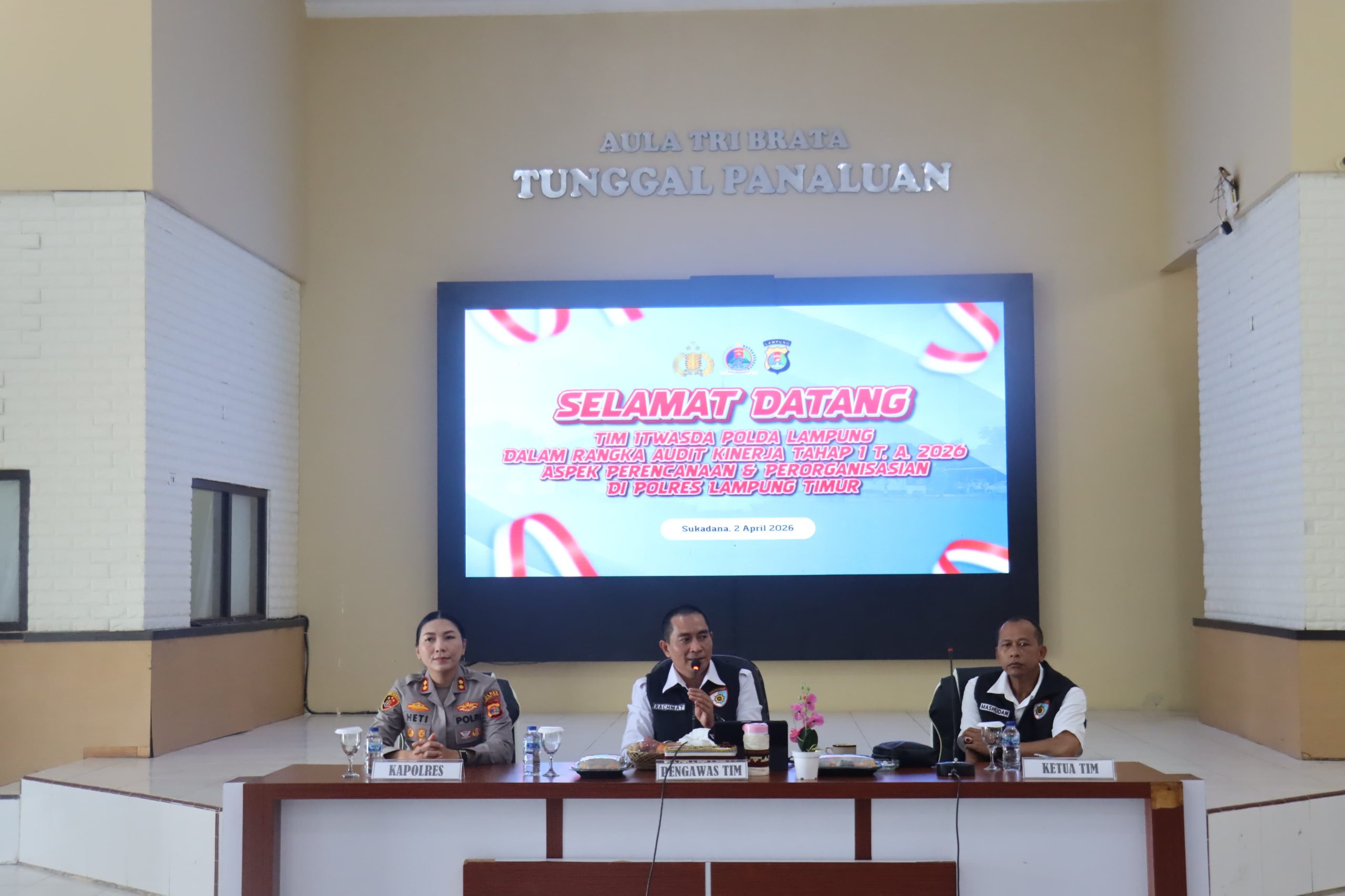 LAMPUNG TIMUR||tigonews.net – Tim Inspektorat Pengawasan Daerah (Itwasda) Polda Lampung melaksanakan pemeriksaan logistik di Mapolres Lampung Timur, Kamis (2/4/2026). Kegiatan ini dilakukan untuk memastikan kesiapan sarana dan prasarana dalam menunjang tugas kepolisian di wilayah hukum setempat.