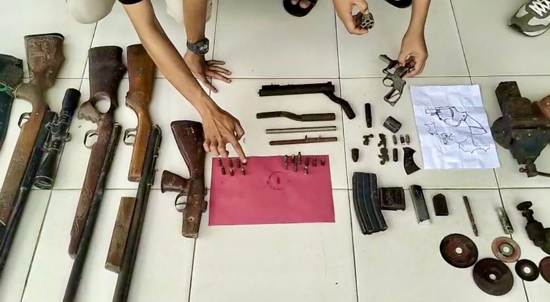 Dalam proses penangkapan serta penggeledahan di kediaman tersangka, Polisi tidak hanya menemukan barang bukti terkait penyalahgunaan narkotika, tetapi juga sejumlah peralatan yang diduga digunakan untuk merakit senjata api rakitan (Senpira), termasuk jenis laras panjang.
