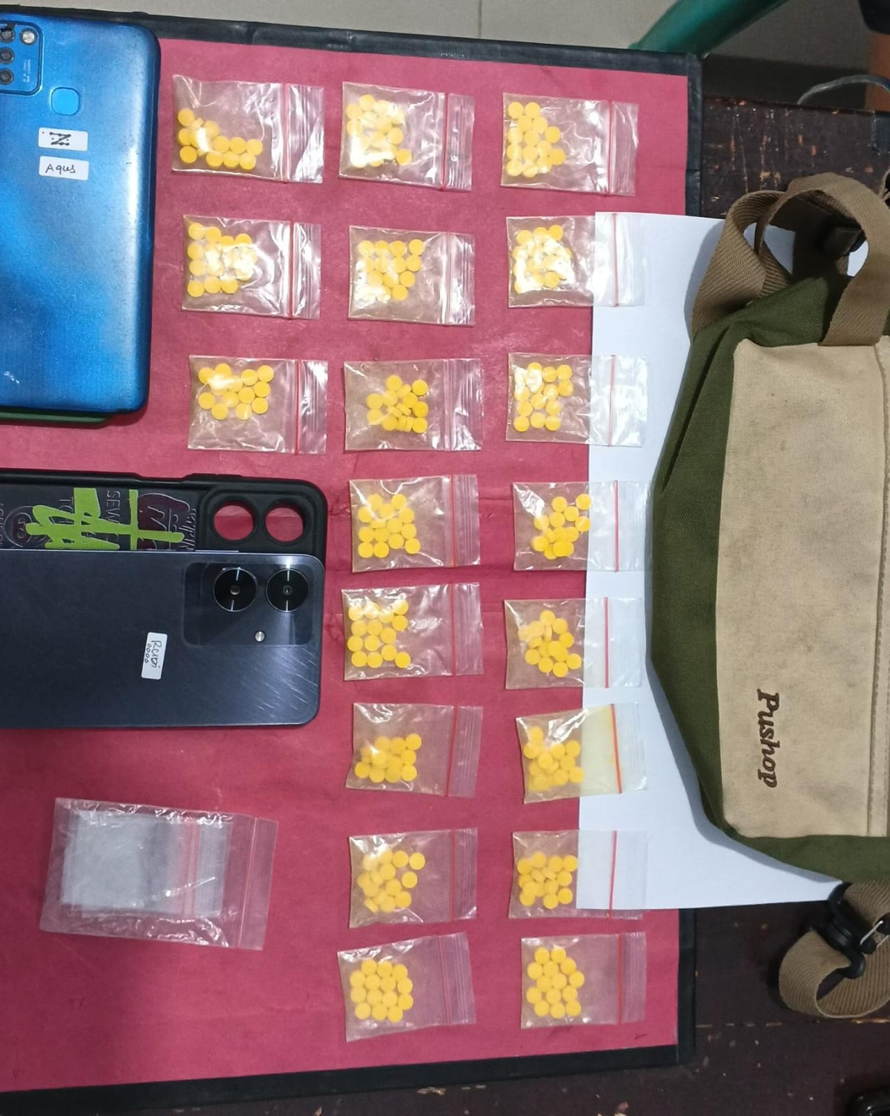 Dari penangkapan ketiganya, Polisi berhasil mengamankan 20 klip yang berisi 258 butir obat keras jenis HEXYMER, 1 buah tas warna hijau, 4 butir obat jenis hexymer, 3 buah Telepon genggam.